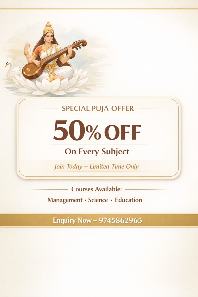 🌼 Saraswati Puja Special 🌼 “Begin your journey of knowledge with the blessings of Goddess Saraswati” 🎉 50% OFF on EVERY SUBJECT 🎉 Join Today Only • Limited Time Offer 📚 Courses Available Management • Science • Education All Subjects Available 💼 Why Choose Us? Expert Faculty • Affordable Price Plans • Personal Guidance • […]