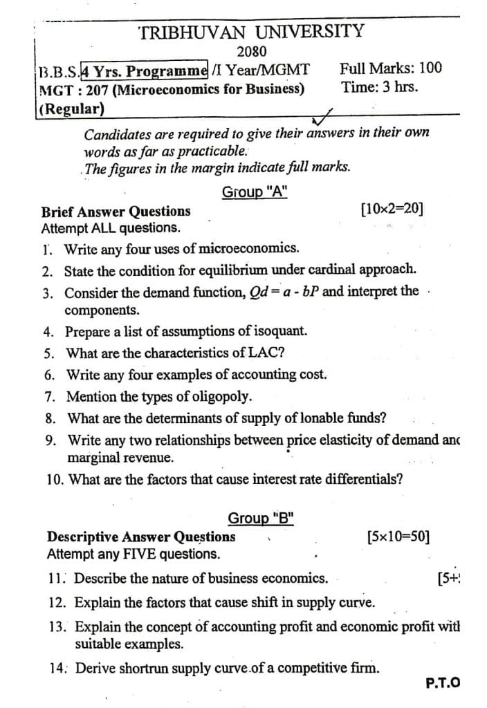 Get the complete BBS 1st Year Microeconomics Notes PDF and Model Questions for free, specially prepared by NDGURU to help Tribhuvan University (TU) students excel in exams. This guide covers all 10 units as per the TU syllabus, including key concepts, diagrams, definitions, and exam-focused summaries. Along with the notes, you’ll also find a set of model questions and previous year papers to practice effectively. Whether you’re doing last-minute revisions or preparing unit-wise, these PDFs will save time and improve your understanding. Ideal for BBS students in Nepal, these resources are easy to follow and exam-oriented. Download now and boost your exam preparation with confidence.