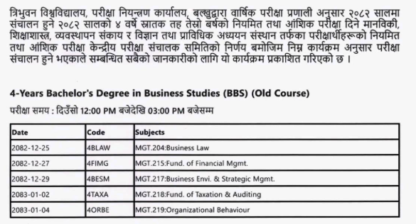 BBS 3rd year exam routine 2082